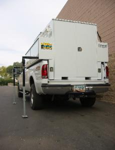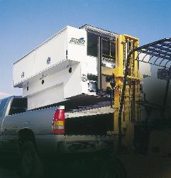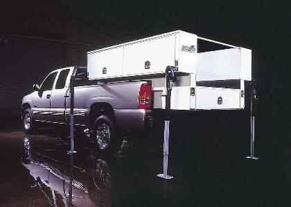 | Jack transfer system allows for truck body removal by one person. Loosen (clamps), raise and drive out |